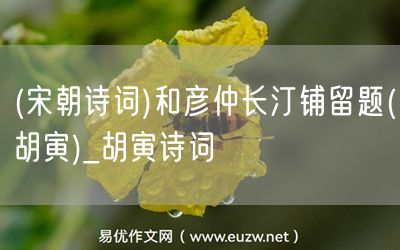 易優(yōu)作文網(wǎng)——(宋朝詩詞)和彥仲長汀鋪留題(胡寅)_胡寅詩詞