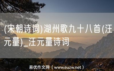 (宋朝詩詞)湖州歌九十八首(汪元量)由易優(yōu)作文(易優(yōu)悅讀)為大家精心整理發(fā)布,學(xué)作文,學(xué)閱讀,提升語文閱讀寫作能力,就來易優(yōu)悅讀。作文培訓(xùn),閱讀培訓(xùn),易優(yōu)悅讀助力每個(gè)孩子成為語文學(xué)霸。