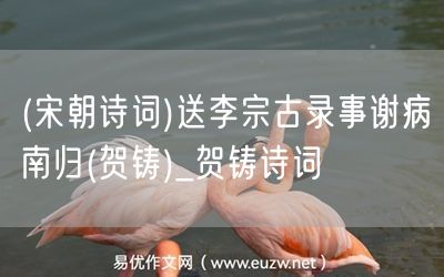 易優(yōu)作文網(wǎng)——(宋朝詩(shī)詞)送李宗古錄事謝病南歸(賀鑄)_賀鑄詩(shī)詞