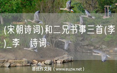 (宋朝詩詞)和二兄書事三首(李廌)由易優(yōu)作文(易優(yōu)悅讀)為大家精心整理發(fā)布,學(xué)作文,學(xué)閱讀,提升語文閱讀寫作能力,就來易優(yōu)悅讀。作文培訓(xùn),閱讀培訓(xùn),易優(yōu)悅讀助力每個孩子成為語文學(xué)霸。