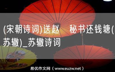 (宋朝詩詞)送趙屼秘書還錢塘(蘇轍)由易優(yōu)作文(易優(yōu)悅讀)為大家精心整理發(fā)布,學作文,學閱讀,提升語文閱讀寫作能力,就來易優(yōu)悅讀。作文培訓,閱讀培訓,易優(yōu)悅讀助力每個孩子成為語文學霸。