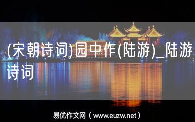 (宋朝詩(shī)詞)園中作(陸游)由易優(yōu)作文(易優(yōu)悅讀)為大家精心整理發(fā)布,學(xué)作文,學(xué)閱讀,提升語(yǔ)文閱讀寫作能力,就來(lái)易優(yōu)悅讀。作文培訓(xùn),閱讀培訓(xùn),易優(yōu)悅讀助力每個(gè)孩子成為語(yǔ)文學(xué)霸。