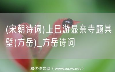 (宋朝詩詞)上巳游顯親寺題其壁(方岳)由易優(yōu)作文(易優(yōu)悅讀)為大家精心整理發(fā)布,學(xué)作文,學(xué)閱讀,提升語文閱讀寫作能力,就來易優(yōu)悅讀。作文培訓(xùn),閱讀培訓(xùn),易優(yōu)悅讀助力每個孩子成為語文學(xué)霸。