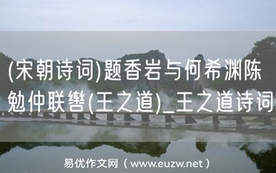(宋朝詩詞)題香巖與何希淵陳勉仲聯(lián)轡(王之道)由易優(yōu)作文(易優(yōu)悅讀)為大家精心整理發(fā)布,學(xué)作文,學(xué)閱讀,提升語文閱讀寫作能力,就來易優(yōu)悅讀。作文培訓(xùn),閱讀培訓(xùn),易優(yōu)悅讀助力每個孩子成為語文學(xué)霸。