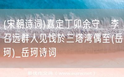 易優(yōu)作文網(wǎng)——(宋朝詩(shī)詞)嘉定丁卯余守槜李召遠(yuǎn)群人見(jiàn)餞於三塔灣偶至(岳珂)_岳珂詩(shī)詞