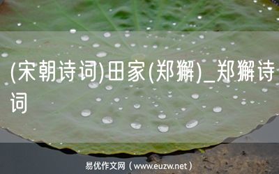 易優(yōu)作文網(wǎng)——(宋朝詩詞)田家(鄭獬)_鄭獬詩詞