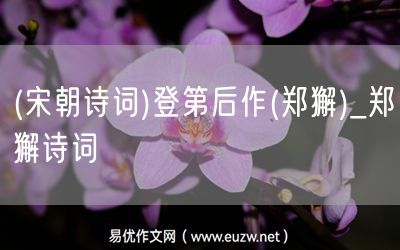 易優(yōu)作文網(wǎng)——(宋朝詩詞)登第后作(鄭獬)_鄭獬詩詞