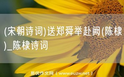 易優(yōu)作文網(wǎng)——(宋朝詩詞)送鄭舜舉赴闕(陳棣)_陳棣詩詞