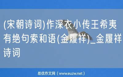 易優(yōu)作文網(wǎng)——(宋朝詩詞)作深衣小傳王希夷有絕句索和語(金履祥)_金履祥詩詞