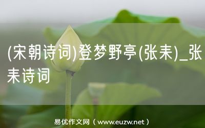 易優(yōu)作文網(wǎng)——(宋朝詩詞)登夢野亭(張耒)_張耒詩詞