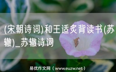 (宋朝詩詞)和王適炙背讀書(蘇轍)由易優(yōu)作文(易優(yōu)悅讀)為大家精心整理發(fā)布,學(xué)作文,學(xué)閱讀,提升語文閱讀寫作能力,就來易優(yōu)悅讀。作文培訓(xùn),閱讀培訓(xùn),易優(yōu)悅讀助力每個(gè)孩子成為語文學(xué)霸。