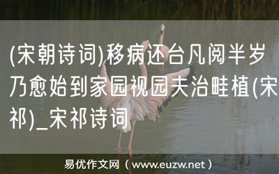 易優(yōu)作文網(wǎng)——(宋朝詩(shī)詞)移病還臺(tái)凡閱半歲乃愈始到家園視園夫治畦植(宋祁)_宋祁詩(shī)詞