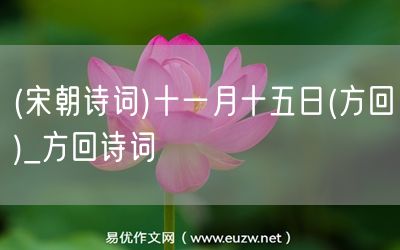 (宋朝詩詞)十一月十五日(方回)由易優(yōu)作文(易優(yōu)悅讀)為大家精心整理發(fā)布,學(xué)作文,學(xué)閱讀,提升語文閱讀寫作能力,就來易優(yōu)悅讀。作文培訓(xùn),閱讀培訓(xùn),易優(yōu)悅讀助力每個孩子成為語文學(xué)霸。
