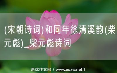 易優(yōu)作文網(wǎng)——(宋朝詩(shī)詞)和同年徐清溪韻(柴元彪)_柴元彪詩(shī)詞