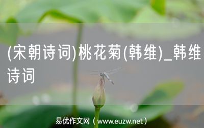 (宋朝詩詞)桃花菊(韓維)由易優(yōu)作文(易優(yōu)悅讀)為大家精心整理發(fā)布,學(xué)作文,學(xué)閱讀,提升語文閱讀寫作能力,就來易優(yōu)悅讀。作文培訓(xùn),閱讀培訓(xùn),易優(yōu)悅讀助力每個孩子成為語文學(xué)霸。