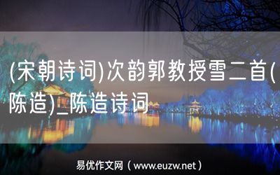 (宋朝詩詞)次韻郭教授雪二首(陳造)由易優(yōu)作文(易優(yōu)悅讀)為大家精心整理發(fā)布,學(xué)作文,學(xué)閱讀,提升語文閱讀寫作能力,就來易優(yōu)悅讀。作文培訓(xùn),閱讀培訓(xùn),易優(yōu)悅讀助力每個(gè)孩子成為語文學(xué)霸。
