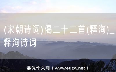 (宋朝詩詞)偈二十二首(釋洵)由易優(yōu)作文(易優(yōu)悅讀)為大家精心整理發(fā)布,學(xué)作文,學(xué)閱讀,提升語文閱讀寫作能力,就來易優(yōu)悅讀。作文培訓(xùn),閱讀培訓(xùn),易優(yōu)悅讀助力每個(gè)孩子成為語文學(xué)霸。