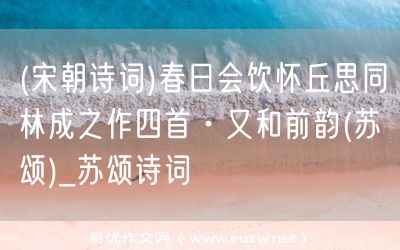 (宋朝詩詞)春日會(huì)飲懷丘思同林成之作四首·又和前韻(蘇頌)由易優(yōu)作文(易優(yōu)悅讀)為大家精心整理發(fā)布,學(xué)作文,學(xué)閱讀,提升語文閱讀寫作能力,就來易優(yōu)悅讀。作文培訓(xùn),閱讀培訓(xùn),易優(yōu)悅讀助力每個(gè)孩子成為語文學(xué)霸。