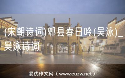 易優(yōu)作文網(wǎng)——(宋朝詩詞)郫縣春日吟(吳泳)_吳泳詩詞