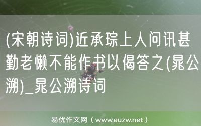 (宋朝詩詞)近承琮上人問訊甚勤老懶不能作書以偈答之(晁公溯)由易優(yōu)作文(易優(yōu)悅讀)為大家精心整理發(fā)布,學(xué)作文,學(xué)閱讀,提升語文閱讀寫作能力,就來易優(yōu)悅讀。作文培訓(xùn),閱讀培訓(xùn),易優(yōu)悅讀助力每個孩子成為語文學(xué)霸。