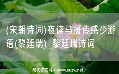 (宋朝詩(shī)詞)夜讀馬援傳感少游語(yǔ)(黎廷瑞)由易優(yōu)作文(易優(yōu)悅讀)為大家精心整理發(fā)布,學(xué)作文,學(xué)閱讀,提升語(yǔ)文閱讀寫作能力,就來(lái)易優(yōu)悅讀。作文培訓(xùn),閱讀培訓(xùn),易優(yōu)悅讀助力每個(gè)孩子成為語(yǔ)文學(xué)霸。
