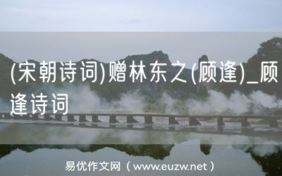 (宋朝詩(shī)詞)贈(zèng)林東之(顧逢)由易優(yōu)作文(易優(yōu)悅讀)為大家精心整理發(fā)布,學(xué)作文,學(xué)閱讀,提升語(yǔ)文閱讀寫(xiě)作能力,就來(lái)易優(yōu)悅讀。作文培訓(xùn),閱讀培訓(xùn),易優(yōu)悅讀助力每個(gè)孩子成為語(yǔ)文學(xué)霸。