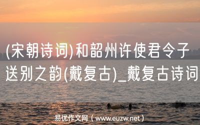 易優(yōu)作文網(wǎng)——(宋朝詩(shī)詞)和韶州許使君令子送別之韻(戴復(fù)古)_戴復(fù)古詩(shī)詞