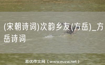 (宋朝詩詞)次韻鄉(xiāng)友(方岳)由易優(yōu)作文(易優(yōu)悅讀)為大家精心整理發(fā)布,學(xué)作文,學(xué)閱讀,提升語文閱讀寫作能力,就來易優(yōu)悅讀。作文培訓(xùn),閱讀培訓(xùn),易優(yōu)悅讀助力每個(gè)孩子成為語文學(xué)霸。