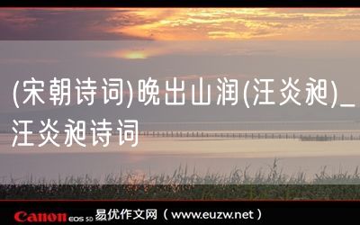 (宋朝詩詞)晚出山潤(汪炎昶)由易優(yōu)作文(易優(yōu)悅讀)為大家精心整理發(fā)布,學(xué)作文,學(xué)閱讀,提升語文閱讀寫作能力,就來易優(yōu)悅讀。作文培訓(xùn),閱讀培訓(xùn),易優(yōu)悅讀助力每個(gè)孩子成為語文學(xué)霸。