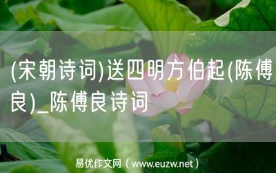 (宋朝詩詞)送四明方伯起(陳傅良)由易優(yōu)作文(易優(yōu)悅讀)為大家精心整理發(fā)布,學(xué)作文,學(xué)閱讀,提升語文閱讀寫作能力,就來易優(yōu)悅讀。作文培訓(xùn),閱讀培訓(xùn),易優(yōu)悅讀助力每個孩子成為語文學(xué)霸。