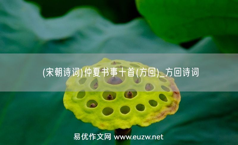 (宋朝詩(shī)詞)仲夏書事十首(方回)由易優(yōu)作文(易優(yōu)悅讀)為大家精心整理發(fā)布,學(xué)作文,學(xué)閱讀,提升語(yǔ)文閱讀寫作能力,就來(lái)易優(yōu)悅讀。作文培訓(xùn),閱讀培訓(xùn),易優(yōu)悅讀助力每個(gè)孩子成為語(yǔ)文學(xué)霸。