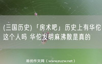 歷史上有華佗嗎?華佗發(fā)明了馬飛散,這是事實。邊肖(李雪)收集并出版了以下書面材料。com www.lishi88.cn)為每個人。讓我們快速瀏覽一下!