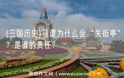 馬謖為什么會“失街亭”?是誰的責任???以下文字資料是由(歷學網(wǎng)www.lishi88.cn)小編為大家搜集整理后發(fā)布的內容,讓我們趕快一起來看一下吧!