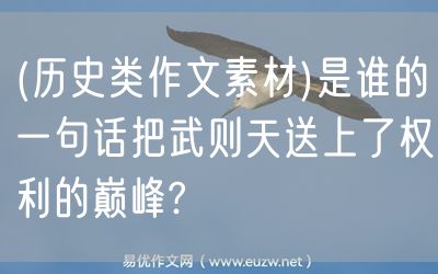 (歷史類作文素材)是誰(shuí)的一句話把武則天送上了權(quán)利的巔峰? 弘道元年(683年),高宗病危,鑒于太子李顯充東宮才三年,處理國(guó)事經(jīng)驗(yàn)不足,高宗遺詔命自己信賴的宰相裴炎與兩位侍郎劉奇賢、郭正一為顧命大臣,“于東宮平章事”,以輔佐太子登基,并在遺詔中留了“軍國(guó)大事有不決者,兼取天后進(jìn)止”的話,即特別授權(quán)武則天以太后身份兼決大事。但并不是全權(quán)委托武則天臨朝管理國(guó)事,而是在有特別重要的軍國(guó)大事,同時(shí)皇帝與大臣們又“不決”時(shí),才能兼取她的決定。