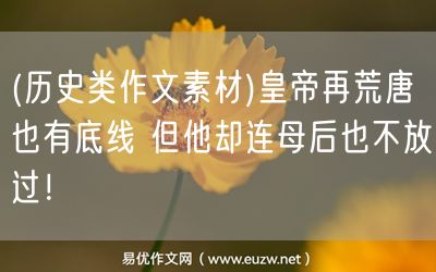 (歷史類作文素材)皇帝再荒唐也有底線 但他卻連母后也不放過!  中國的南北朝時期,繼承了東晉十六國的分裂割據(jù)局面,政權(quán)更迭頻繁。期間出了很多英雄,也出了很多敗類。