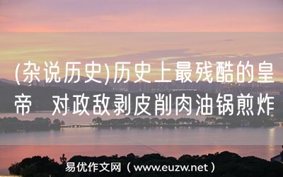 (雜說歷史)歷史上最殘酷的皇帝 對政敵剝皮削肉油鍋煎炸 果對中國歷史上亂殺前朝大臣的皇帝來一次評比,看誰殺得最多,手段又最殘忍,明太祖朱元璋家的老四一定能榮登榜首。朱棣率兵攻下建康,奪得侄子朱允炆的龍椅之后那一番屠戮,真是令鬼為之哭,神為之號,即使是外族入侵,也莫過如此。