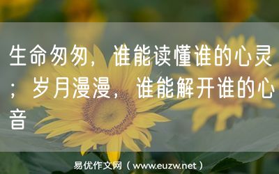 易優(yōu)作文網(wǎng)——生命匆匆,誰能讀懂誰的心靈;歲月漫漫,誰能解開誰的心音