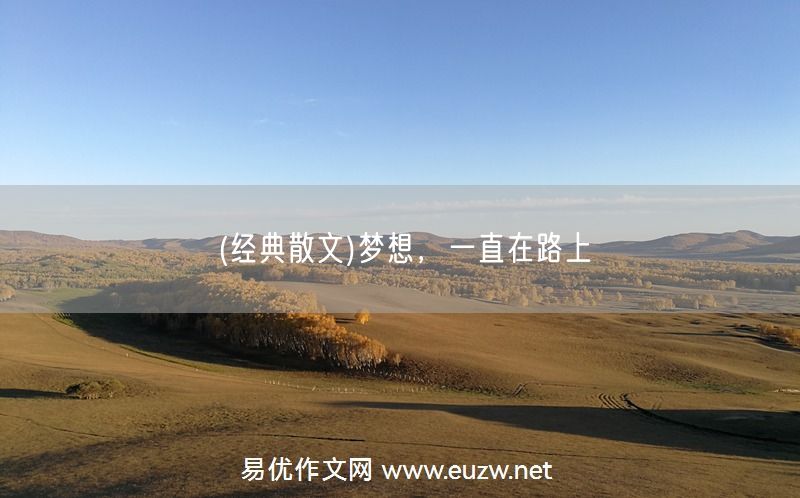 (經(jīng)典散文)夢想,一直在路上 因為有夢,認(rèn)真過,改變過,努力過。夢想是一個人奮斗的動力,夢想是一個人動力的源泉。幸福和歡樂在于奮斗,而最有價值的是為夢想而奮斗。有夢想,心就有了方向,有了夢想不在為過去而掙扎。努力吧,夢就在不遠(yuǎn)的地方。天在高又能怎樣,踮起腳尖就能更接近陽光。心若沒有棲息的地方,到哪里都是在流浪。
