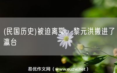易優(yōu)作文網(wǎng)——(民國(guó)歷史)被迫離鄂:黎元洪搬進(jìn)了瀛臺(tái)
