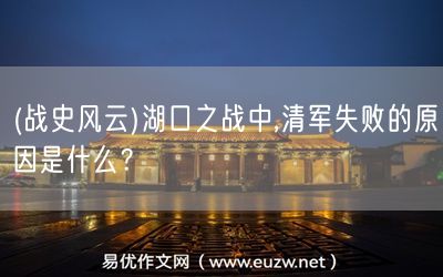 易優(yōu)作文網(wǎng)——(戰(zhàn)史風(fēng)云)湖口之戰(zhàn)中,清軍失敗的原因是什么?
