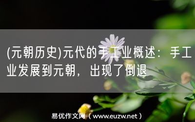 易優(yōu)作文網(wǎng)——(元朝歷史)元代的手工業(yè)概述:手工業(yè)發(fā)展到元朝,出現(xiàn)了倒退