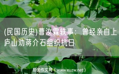 易優(yōu)作文網——(民國歷史)曹汝霖軼事:曾經親自上廬山勸蔣介石組織抗日