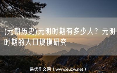 易優(yōu)作文網(wǎng)——(元朝歷史)元明時期有多少人?元明時期的人口規(guī)模研究