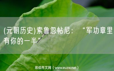 易優(yōu)作文網(wǎng)——(元朝歷史)索魯忽帖尼:“軍功章里有你的一半”