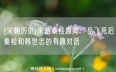 易優(yōu)作文網(wǎng)——(宋朝歷史)宋朝秦檜趣聞:岳飛死后秦檜和韓世忠的有趣對話