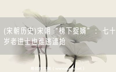 易優(yōu)作文網(wǎng)——(宋朝歷史)宋朝“榜下捉婿”:七十歲老進(jìn)士也難逃遭搶