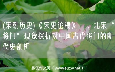 易優(yōu)作文網(wǎng)——(宋朝歷史)《宋史論稿》一、北宋“將門”現(xiàn)象探析對中國古代將門的斷代史剖析