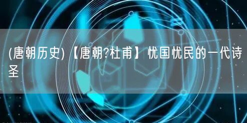 (唐朝歷史)【唐朝?杜甫】憂國憂民的一代詩圣