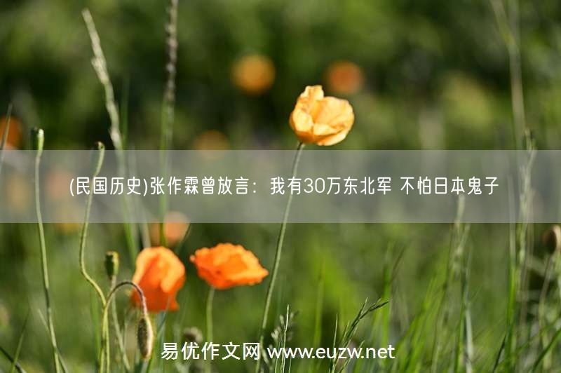 易優(yōu)作文網(wǎng)——(民國(guó)歷史)張作霖曾放言:我有30萬(wàn)東北軍 不怕日本鬼子