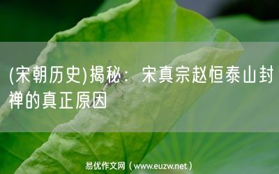 易優(yōu)作文網(wǎng)——(宋朝歷史)揭秘:宋真宗趙恒泰山封禪的真正原因